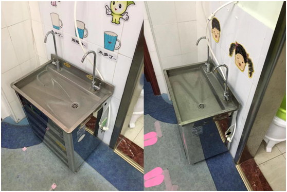 八年后,2020年新冠疫情的爆發(fā)讓園方高度警惕,小朋友們的身體健康馬虎不得,防疫期間小朋友們的飲水安全更是重中之重。由于園內(nèi)的艾龍設(shè)備使用年限較久,園方擔(dān)心設(shè)備老化會影響出水水質(zhì),并且裝配的過濾系統(tǒng)與現(xiàn)在市面上的最新過濾系統(tǒng)相比之下過濾性能也有不足,為了筑牢疫情防控安全屏障,嚴(yán)格保障師生飲水安全,清遠(yuǎn)市實驗幼兒園決定更新園內(nèi)的公共飲水設(shè)備,采購一批新的飲水設(shè)備替換園內(nèi)的老舊設(shè)備。