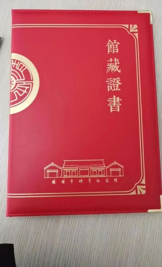 楊靖宇將軍紀(jì)念館為駐馬店市清澈商貿(mào)有限公司頒發(fā)的館藏證書