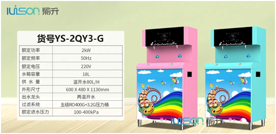 愉升幼兒園節(jié)能飲水機給孩子量身定做的取水機,兩龍頭獨立出水,飲水不排隊,足夠50-60人使用。外觀小巧呆萌的卡通形象增加了孩子們喝水的樂趣;合適的取水高度,讓幼兒能夠獨自接水,產(chǎn)品棱角均為圓弧設(shè)計,跟磕傷說拜拜,機身為金屬與工程塑料噴涂設(shè)計,避免幼兒觸電,更安全,雙面固定,防止翻倒。