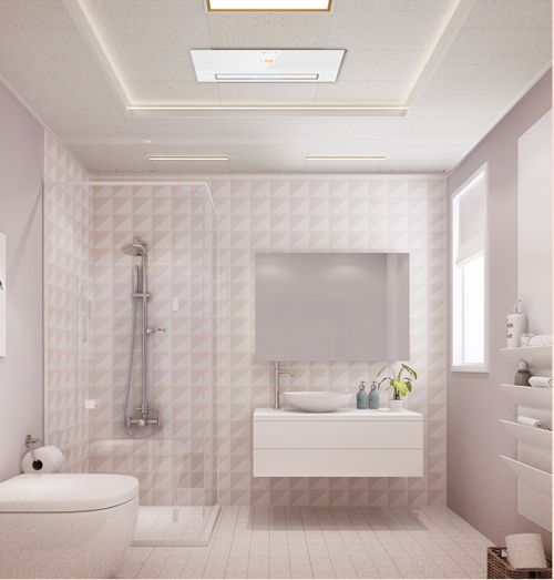 假如你家衛生間夠寬闊,已經>6㎡,會提議叢干濕分區,這一個情況下就不宜用一體機浴霸,提議用分體浴霸。便是浴霸主機和出風口分離,可以解讀成中央浴霸的概念。強烈推薦奧普的奧芯全域暖。