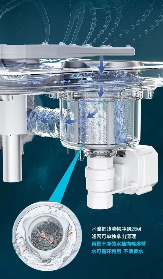 新型獨立過濾器,摒棄了傳統(tǒng)的濾網(wǎng)板設(shè)計,能夠有效防止食物殘渣殘留,輕輕旋轉(zhuǎn)上提即可取下清理,無需拆卸噴淋臂,日常清理更方便。