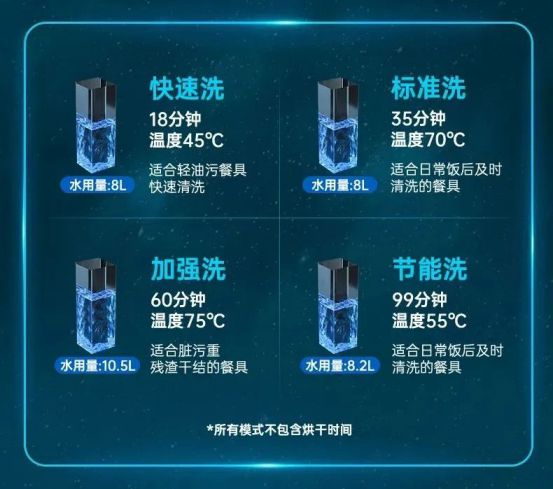 18分鐘快速清洗模式,潔凈餐具立等可取。四檔洗滌程序,充分滿足您日常生活中不同場景需求。