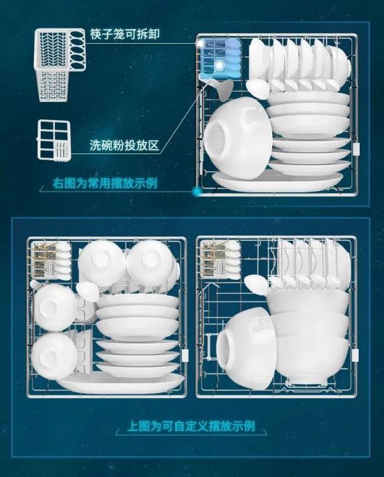 新一代升級碗籃,專為中國家庭設(shè)計,可移動可調(diào)節(jié),充分滿足中式餐具擺放需求。