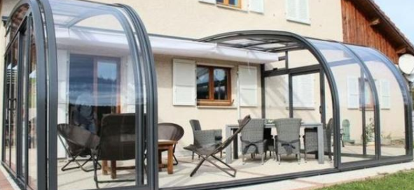 這種可伸縮的陽光房看起來更加美麗和現代化,因為它會收縮,所以物業不會干擾太多。如果你住在一樓,在院子里安裝這種陽光房是非常合適的,有一種非常現代的感覺。