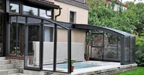 這種陽光房使用時可以鎖起來,冷的時候可以讓你曬曬太陽,不會覺得冷,也非常適合接待客人。有些家庭還會在里面建一個游泳池,不使用時會直接縮起來,這樣就可以用作裝飾,不會占用空間。