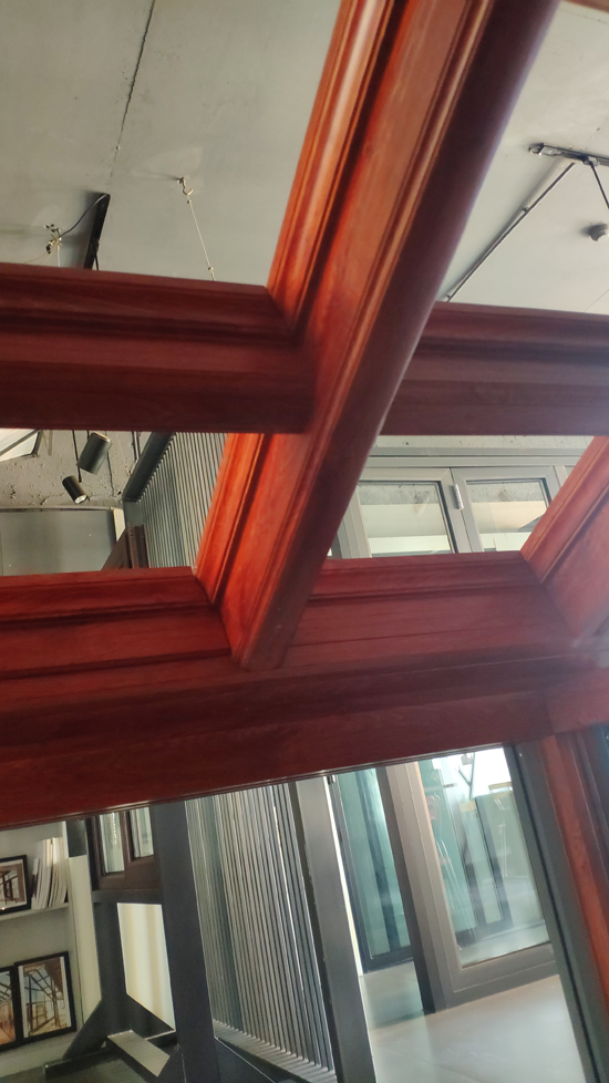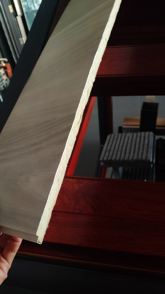 鋁合金型材填充保溫材料,厚度可采用2、3、5公分,可根據不同的屋頂坡面進行裁切,木紋轉印顏色,可達到與門窗以及原建筑外觀內飾統一和諧。