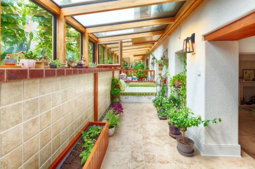 在滿室陽光的玻璃屋內(nèi)種的菜