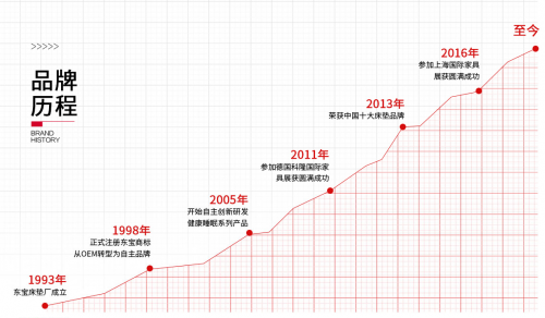 東寶床墊成立于中國東莞家具之都厚街,在90年代的創業潮流中,東寶床墊是中國第一批床墊品牌。起初,東寶床墊是從制造廠起步的,這也為床墊品牌建立后的質量控制奠定了良好的基礎。東寶無疑是床墊制造業的領導者,因為它在床墊制造過程中的熟悉和成熟。后來東寶開始研發自己的床墊品牌,大膽開發高端領域,開發了臥皇寢具和凱蒙寢具兩大品牌,使東寶的品牌活力得以持續發展。