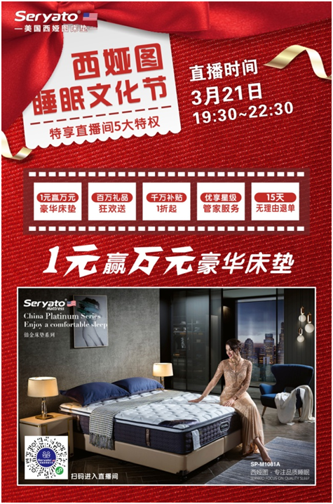 美國西婭圖自2003年成立以來,專注于高端床墊研發、生產、銷售。全球擁有三大生產基地:美國加州、馬來西亞吉隆坡、中國佛山。從品牌成立之初走到現在,我們一直專注于將高品質睡眠產品帶入千家萬戶。之所以選擇在世界睡眠日當天舉辦文化節活動,也是為了將高品質的睡眠產品帶給大家,從而喚起全民對睡眠重要性的認識。