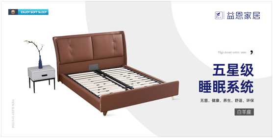 益恩家居秉承“顧客第一、勇攀高峰”的經營理念,堅持五星級睡眠系統的產品質量和服務水平。其倡導“無菌、健康、養生、舒適、環保”的設計理念,按照ISPA國際睡眠制品協會標準和人體工程學原理,融合中西家居文化于一體,設計出擁有自身獨特風格的床墊精品,致力于打造睡眠寢具行業的頂級品牌。