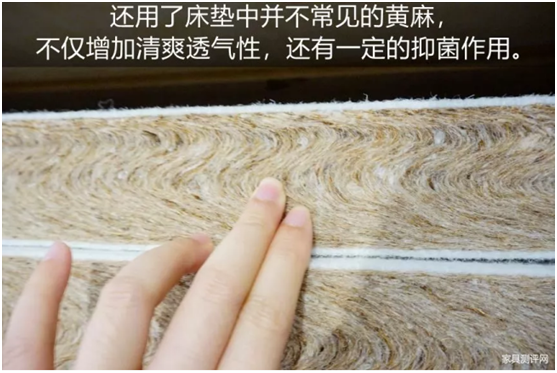 另一個區別于傳統椰棕的做法——采用的棕絲是用“S型”的方式進行了排列。相比壓平式的組合形式,彈性更加突出,睡的時候多了個緩沖幅度。即使體型偏瘦的人,也不會覺得生硬。用了床墊中并不常見的黃麻。主要是為了增加床墊的清爽透氣性,還有一定的抑菌作用,用料配比都是很講究的。最后,經過一次高溫脫糖,極大程度地降低了長蟲的可能。