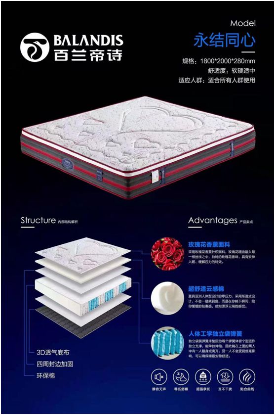 作為健康養(yǎng)生睡眠的守護(hù)者,百蘭帝詩(shī)家居一直在身體力行,為全球消費(fèi)者提供集“承托、舒適、耐用”于一體的高品質(zhì)床墊,幫助消費(fèi)者享受健康、舒適的睡眠體驗(yàn),助你一整天精神煥發(fā),活力滿(mǎn)滿(mǎn)!