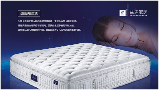 睡個好覺,從益恩家居開始。作為“中國十大床墊品牌”,益恩家居正在以產品、口碑和渠道的用戶體驗,打造品牌發展的“鐵三角”,用設計改變中國人的生活,用最科學的技術為中國人打造頂級健康睡眠。在企業創立的27年,益恩家居致力于打造睡眠寢具行業品牌,當將會成為國內高端床墊市場不可忽視的重量級選手。