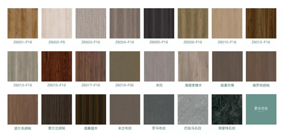 截至11月中旬,華洲已完成8大系列飾面花色配置,囊括了木紋、布紋、石紋、皮紋、極致、個性、靚彩、金屬系列,工藝涉及時興的UV高光、超啞膚感等。