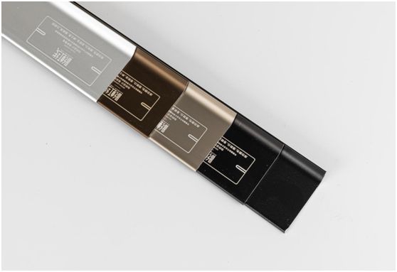 這類踢腳線安裝便利,防火防潮,也好擦洗,一般在公共區(qū)域會(huì)比較常見(jiàn)。有鋁制合金的,也有不銹鋼的。鋁合金可做多種造型和紋理,比如木紋、拉絲等,視覺(jué)效果柔和、造價(jià)低、細(xì)節(jié)處理得好。但是柔韌性差,不耐磨,容易變形,質(zhì)感冰冷,對(duì)于北方室內(nèi)有暖氣的環(huán)境也不適用。