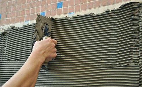 瓷磚膠也叫瓷磚粘合劑或粘結劑、粘膠泥等,這是一種新型的現代裝飾材料,它取代了傳統的水泥砂,粘結力是水泥砂漿的幾倍,又能有效地粘貼大瓷磚和石材,避免掉磚的風險。(隨時在墻體批刮,瓷磚背面同樣要批刮)。