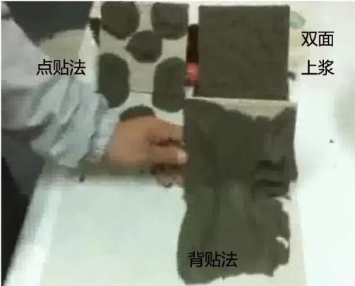 我們把攪拌好的瓷磚膠利用雙面上漿法、點貼法、背貼法來粘貼瓷磚。