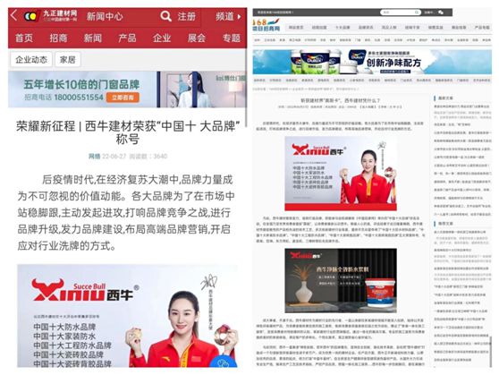 2022年上半年,西牛建材加大力度進(jìn)行品牌宣傳,先后與國內(nèi)多家知名網(wǎng)站達(dá)成戰(zhàn)略合作伙伴關(guān)系。在行業(yè)下一個(gè)財(cái)富風(fēng)口處,借助社會(huì)媒介的影響力,全面助力品牌騰飛。