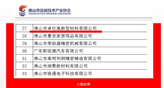 佛山卓仕高新型材料有限公司—億固生產基地,榮獲佛山2022“專精特新”企業榮譽稱號!