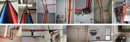 后來有位客戶開始出于預算考慮,通陽臺的那一段水管用塑料管,安裝好了后一看,還是過不了自己這關,拆了重裝我們紫銅管。