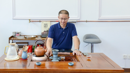 (潘總頗有興致的向我們介紹銅壺的保養)