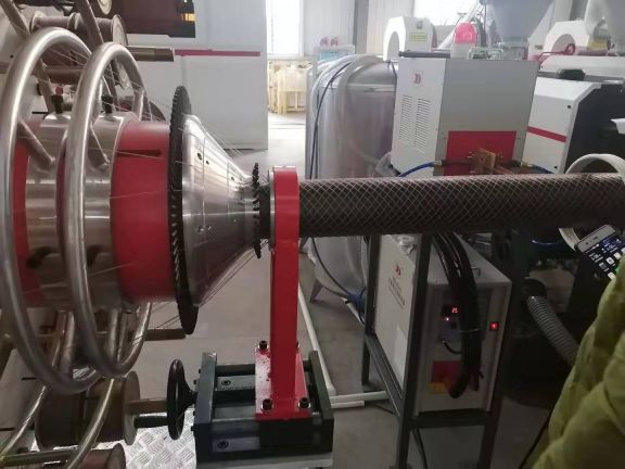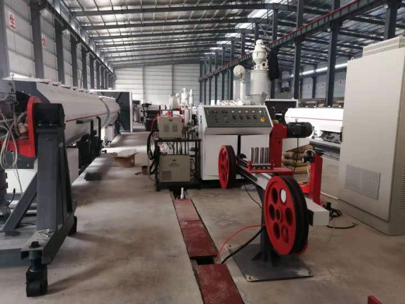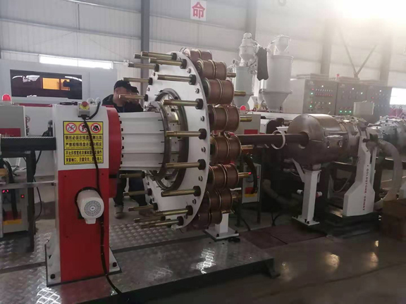 為了適應中國管業(yè)市發(fā)展趨勢,提高產(chǎn)品競爭力,提升企業(yè)制造水平,鄧權管業(yè)斥巨資引進2條先進的鋼絲網(wǎng)骨架管生產(chǎn)線(GS/PE-G-250、GS/PE-G-630),該設備由國內(nèi)一流鋼塑復合管道設備生產(chǎn)企業(yè)四川金石東方新材料科技有限公司(GB/T 32439-2015《給水用鋼絲網(wǎng)增強聚乙烯復合管道》國家標準編制單位)研發(fā)制造,屬最新出口機型,擁有多項自主知識產(chǎn)權,技術實力居國內(nèi)前列。鄧權鋼絲網(wǎng)骨架設備可生產(chǎn)Φ75-Φ630各種管材規(guī)格,穩(wěn)定生產(chǎn)速度可達80米/h,生產(chǎn)能力和技術水平在同行業(yè)領先,在本土企業(yè)可謂首屈一指。