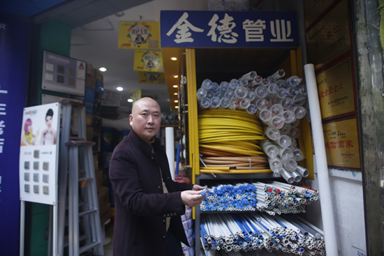楊見勇:從經營金德管業產品以來,店鋪的銷售量穩步提升。其中,2011年到2014年,店鋪的銷售量連續三年在市區名列前茅,樹立了重慶市的標桿。2013年。企業領導到來江津考察,我出席了經銷商大會,接著又到重慶出席集團表彰會,這都是店鋪銷售量帶給我的榮譽。但最近幾年銷售量有一定的下滑,關鍵原因是受房地產影響,建材市場不好做,競爭壓力越來越大。