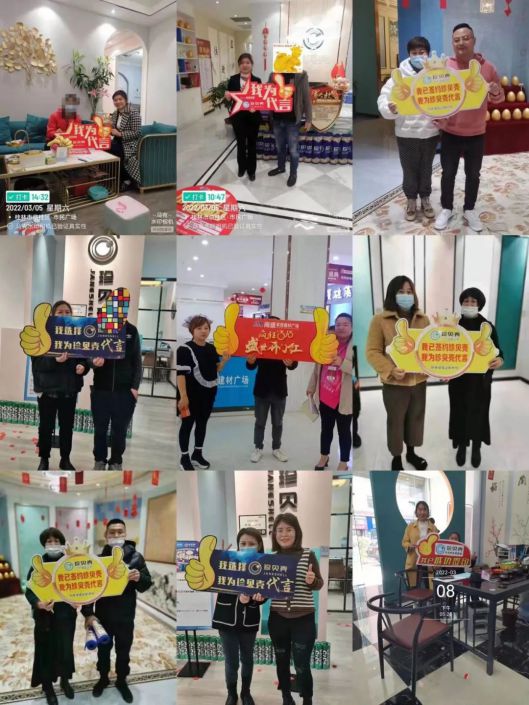 本次活動于2022年3月4日-2022年3月20日結束,在全國各地疫情局部爆發的形勢下,珍貝殼公司積極應對,分別采取網絡直播,微信爆破,電話營銷等多種線上營銷模式,線下采取門店形象體驗,小區樣板展示等多種線下營銷渠道相結合。公司銷售部的各區域經理頂著疫情被感染的風險,到線下門店進行業務指導及簽單協助。活動于昨日正式落下帷幕,最終累計簽單953單,累計回款金額650萬元。