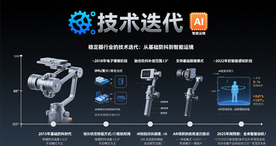 從基礎(chǔ)防抖到智能運(yùn)鏡,穩(wěn)定器行業(yè)的技術(shù)迭代不僅重塑了影像創(chuàng)作方式,更降低了專業(yè)表達(dá)的門(mén)檻。在短視頻與直播經(jīng)濟(jì)蓬勃發(fā)展的當(dāng)下,這一演進(jìn)正助力每個(gè)人成為“生活的導(dǎo)演”,而技術(shù)的持續(xù)創(chuàng)新,必將開(kāi)啟影像創(chuàng)作的新紀(jì)元。