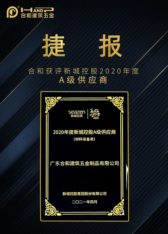 品質于心,匠心于行,攜手新城控股,合和打造眾多標志性項目,贏得業主的高度認可。經層層評選,在眾多實力雄厚的供應商中脫穎而出,品質之魂,存于匠心,以實力展佳績,大會上,合和榮膺“2020年度新城控股A級供應商”獎項!