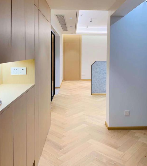 這個隱形門起到的和鞋柜收納柜一種延伸的作用,也是為了解決直沖的問題。