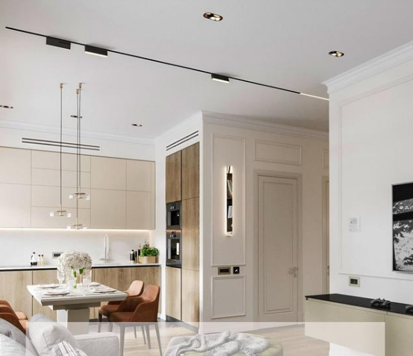 很多家庭裝修做好了才想做無主燈,后因為吊頂太麻煩放棄了。而磁吸燈一切都在軌道上,不需要多處開孔、藏線。使用明裝軌道,不做吊頂也能實現(xiàn)無主燈設(shè)計。