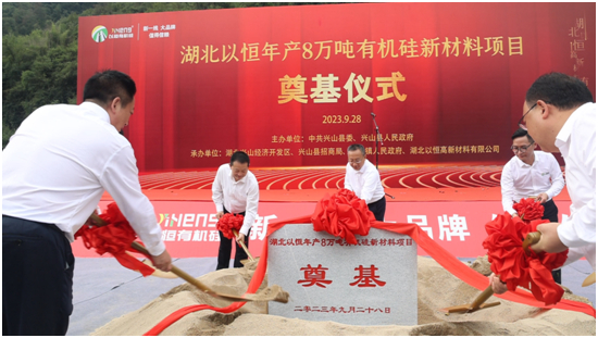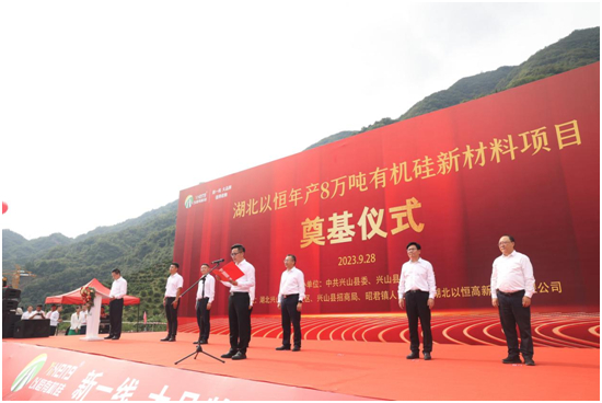 2023年9月28日上午9點18分,湖北以恒年產8萬噸有機硅新材料項目開工儀式,在湖北興山化工園大禮溪片區湖北以恒廠區內如期舉行。前往現場參加儀式的有興山縣委領導、縣直部門、鄉鎮、企事業單位、縣開發區管委會、縣招商局干部職工、昭君鎮人民政府干部職工及群眾代表等160余人。在社會各界的見證下,湖北以恒開工奠基儀式于當日圓滿成功!