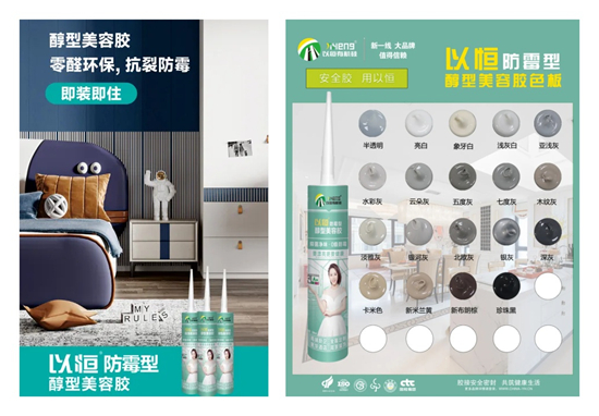 在眾多展品中,全新包裝的“以恒防霉型醇型美容膠”無疑成為了最耀眼的明星。它集安全環保、抑菌凈味于一身,擁有卓越的0級防霉性能,確保客戶在使用過程中無后顧之憂,產品提供多樣化的顏色選擇,做到一箱即可調色,滿足客戶的個性化需求,提升客戶滿意度。“以恒防霉型醇型美容膠”的誕生,標志著以恒研發團隊在醇型核心技術上取得了重大突破!