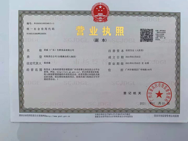 企業名稱: 荷威(廣東)生鮮食品有限公司