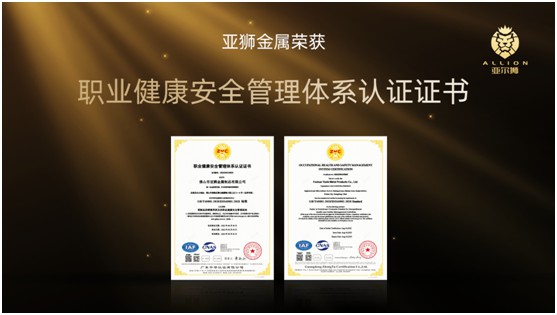 近日,亞獅金屬順利通過了國家權威“質量、環境、健康安全”3項ISO認證,這不僅標志著公司產品與服務達到了國際最新的質量管理體系標準,且具備職業健康安全風險的管理能力和產品與服務的環境保護能力。