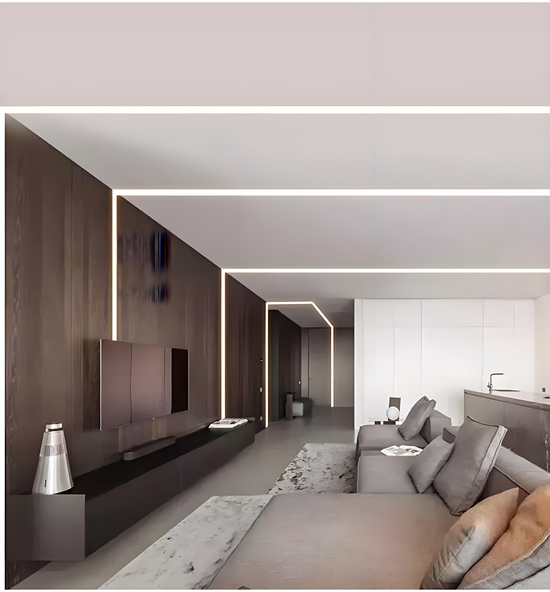 - 間接照明:利用LED燈帶作為間接光源,如安裝在天花板與墻壁的交界處,形成“洗墻”效果,既能照亮空間,又能避免直射光線造成的眩光。