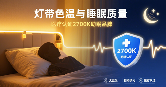 未來,隨著AIoT技術的滲透,助眠燈帶正從“被動發(fā)光”進化為“主動守護”。新一代產(chǎn)品已集成毫米波雷達,可無接觸監(jiān)測呼吸頻率與翻身次數(shù),自動調(diào)節(jié)亮度與色溫;部分高端型號甚至能聯(lián)動智能床墊,根據(jù)睡眠階段推送不同波長的光波,實現(xiàn)“光療級深度修復”。可以預見,當“光環(huán)境健康管理”成為智能家居標配,2700K將不僅是色溫數(shù)值,更是現(xiàn)代人對抗內(nèi)卷、奪回睡眠主權的溫柔武器。
