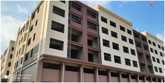 項目以米黃色和紅棕色為整體裝飾色調,產品裝飾出的質感效果和色彩感,構造出現代都市建筑美感,賦予建筑物靚麗大氣的外觀。
