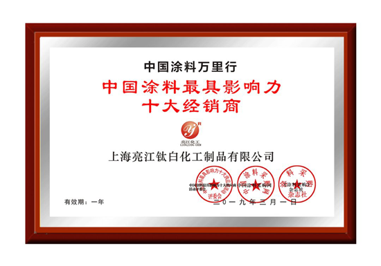 為了找到涂料公司關(guān)心的高質(zhì)量原材料供應(yīng)商,涂料采購(gòu)網(wǎng)組織評(píng)選了“中國(guó)涂料行業(yè)十大最具影響力經(jīng)銷(xiāo)商”。在此次評(píng)選中,80%的涂料公司選擇了上海亮江鈦白化工制品有限公司(以下簡(jiǎn)稱(chēng)“亮江化工”),亮江化工因此獲得了“中國(guó)涂料行業(yè)十大最具影響力經(jīng)銷(xiāo)商”的稱(chēng)號(hào)。