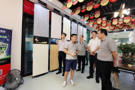 交流過程中,各領導對鉑英特自主研發的無機智能涂料頗感興趣,謝部長認為:鉑英特無機智能涂料采用歐標A級環保原材料,非常符合當今綠色環保,低碳減排的一個發展方向,同時高達90%的甲醛凈化率及99.9%的抗霉菌性能,也非常利于人居環境的持續發展。