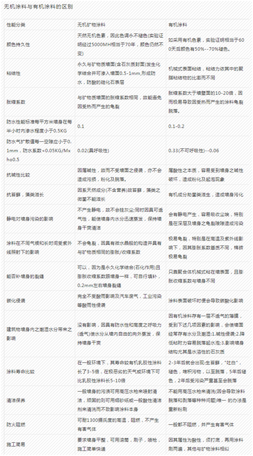 下表是鉑英特小編為大家整理的無機涂料與傳統有機涂料相關性能的詳細對比,有興趣的小伙伴可以點開大圖詳細了解一下。