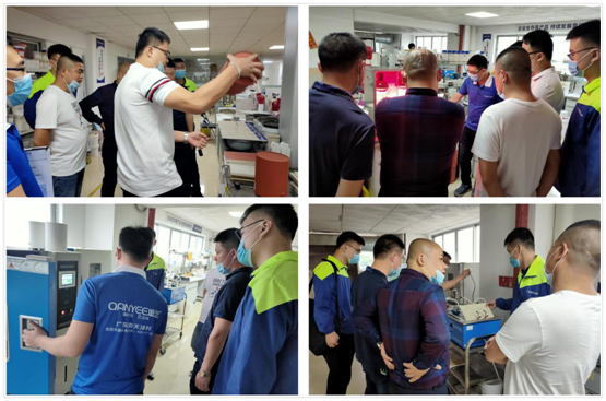 在現(xiàn)場(chǎng),南天涂料一行領(lǐng)導(dǎo)還現(xiàn)場(chǎng)為來訪嘉賓們做了產(chǎn)品耐洗刷測(cè)定、高低溫交變實(shí)驗(yàn)等模擬實(shí)驗(yàn)。其中,在反射隔熱涂料的模擬實(shí)驗(yàn)上,同時(shí)打開燈源,觀察桶頂背面溫度變化,使用南天冰凍涂料的桶頂背面溫度大大低于使用普通桶頂背面的溫度,經(jīng)過3分鐘后,溫度差達(dá)到15℃,新品的隔熱效果在現(xiàn)場(chǎng)完美的展現(xiàn)。