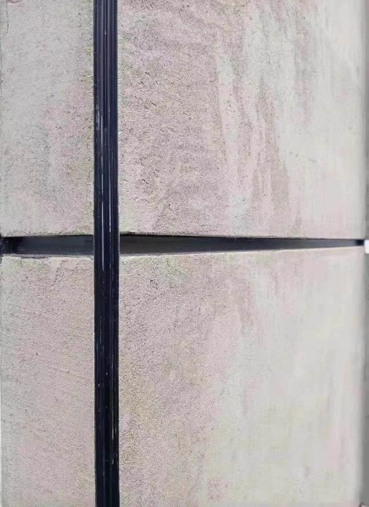 外墻粗底膩?zhàn)蛹鞍啄z施工:在水中緩慢加入粗底膩?zhàn)雍桶啄z,攪拌成均勻的漿料,墻面先用粗底膩?zhàn)优我槐椋稍锖螅M(jìn)行分格,在分隔條上打上免釘膠固定深槽材料(提示:基面不得有浮灰、油污其他污染物、其墻面的含水量應(yīng)小于10%。漿料應(yīng)即配即用,配制好的漿料需在4小時(shí)內(nèi)用完,不得二次加水)。