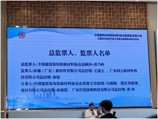 在備受矚目的中國建筑裝飾裝修材料協會五屆四次理事會上,協會迎來了新的領導層。此次“協會換帥”不僅標志著協會發展的新起點,也預示著行業未來的新氣象。林德漆總經理王戰立先生受邀擔任監票人,以其公正、公平、公開的態度,確保了換屆選舉的順利進行,為協會的新篇章開啟貢獻了自己的力量。