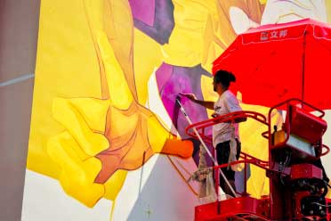 2016年,立邦「為愛上色」藝術+項目,攜手全球18名具有人文關懷特質的知名藝術家,在中國展開以當地文化關注為基礎,以「兒童關懷」為主題的墻畫彩繪行動。自項目發起以來,「為愛上色」藝術+已先后邀請了國內外數十名藝術家來到中國進行創作,給孩子帶去藝術和愛的同時,助力打造中國藝術文化新空間。