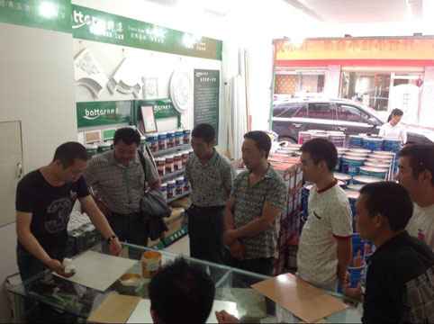 開業當天拜特水性漆技術團隊在這里舉行了為期一天的免費水性漆新工藝技術交流會,講解水性木器漆施工流程,場面火爆,引來油木工師傅與當地消費者前來參觀學習,還有好學的油木工師傅現場親自演示學習,現場氣氛非常融洽,整個現場不像是一個開幕式更像是一個體驗活動。