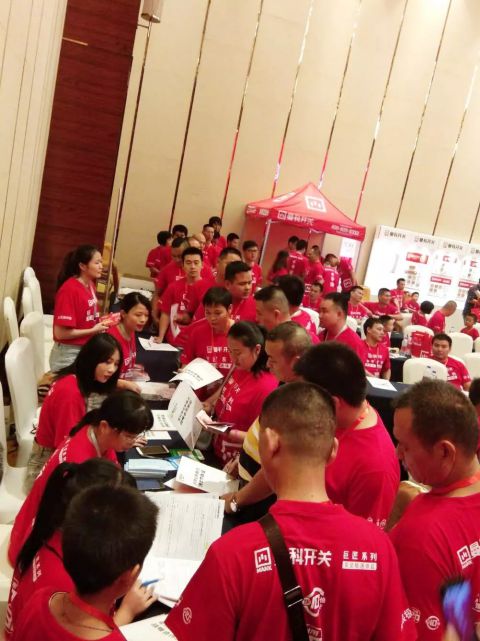 隨后德明發(fā)公司總經(jīng)理鄭總發(fā)表致辭,感謝終端商對(duì)曼科品牌的大力支持,希望終端商繼續(xù)與曼科開關(guān)同心同行,共享共榮。