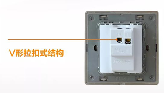 將舊款螺絲頭固定電線改為V型拉扣式結構,使之夾線更穩,更安全,避免電線跑偏。V型拉扣式接線端采用環保電鍍工藝,能達到經鹽霧測試120小時不生銹的優質性能。