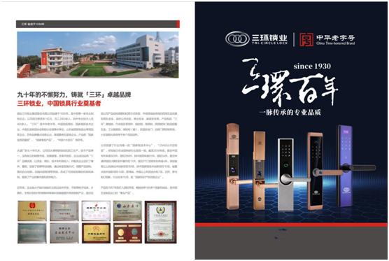 2019年9月,中國知名時政雜志《環(huán)球人物》對百年品牌“三環(huán)鎖業(yè)”進行了專題報道。作為“中國十大鎖具品牌”和“中國十大智能鎖品牌”,三環(huán)鎖業(yè)憑借核心技術(shù)、卓越產(chǎn)品、出色口碑和智啟未來之理念,引起了《環(huán)球人物》采編部的青睞。